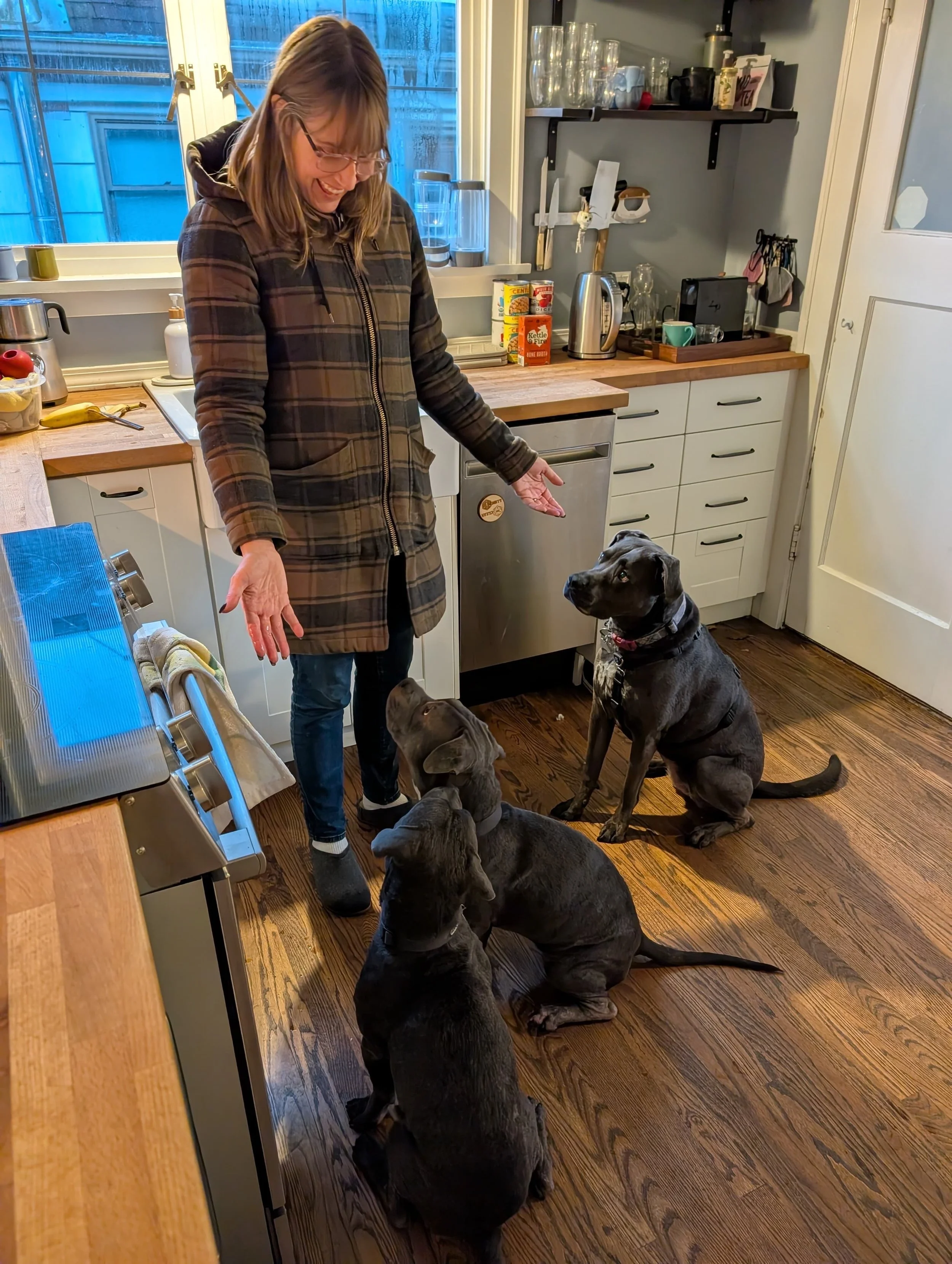 βWith our latest fosters, two puppies, it took a few days but theyβve adjusted nicely to our work-from-home life-style. And weβve gotten down their schedule too. Potty breaks between Zoom meetings. Longer walks before and after work. Backyard playtime during brief work breaks. It works for all of us. Pups are happy and weβre sane thanks to the routine. β